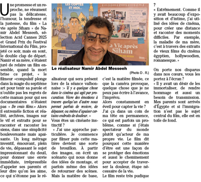 Nice-matin du 14 avril 2022 : PRIX LUX du Parlement européen.