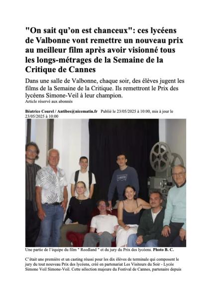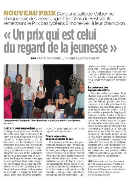 Nice Matin (17 mai) : La Semaine de la critique aux Visite à valbonneurs du Soir